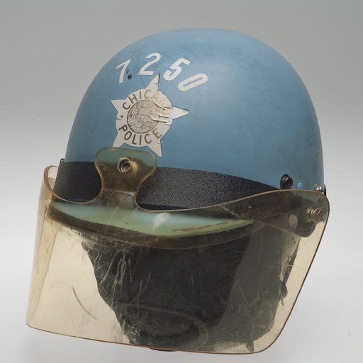 Bright helmets served as visible symbols of authority and offered protection from flying. An event characterized by widespread police brutality. The woman who was selling this said her husband who had passed away, was a chicago policeman for 28 years.