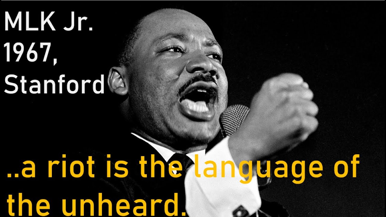 Get Rioting Is The Language Of The Unheard Full Speech PNG. King ended the speech on a note of hope and faith, not just for justice but also for achieving it in a way that was nonviolent and intersectional. If not all riots are the language of the unheard, then that means not every riot is justified.